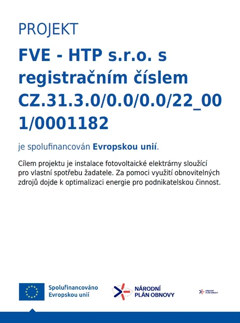 Project FVE - HTP s.r.o. with registration number CZ.31.3.0/0.0/0.0/22_001/0001182