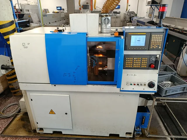 Precision CNC automatic lathe for high‑speed machining of small‑diameter bar stock with driven tools and sub‑spindle.